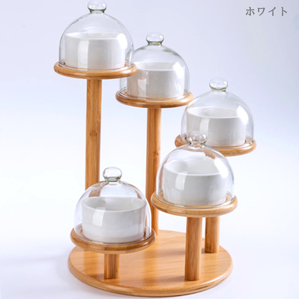 5連 スタンド ディスプレイ カップ ガラス蓋 収納 複数 インテリア 北欧 カフェ 飲食 備品 お洒落 シンプル カワイイ 上品 BSF-0100
